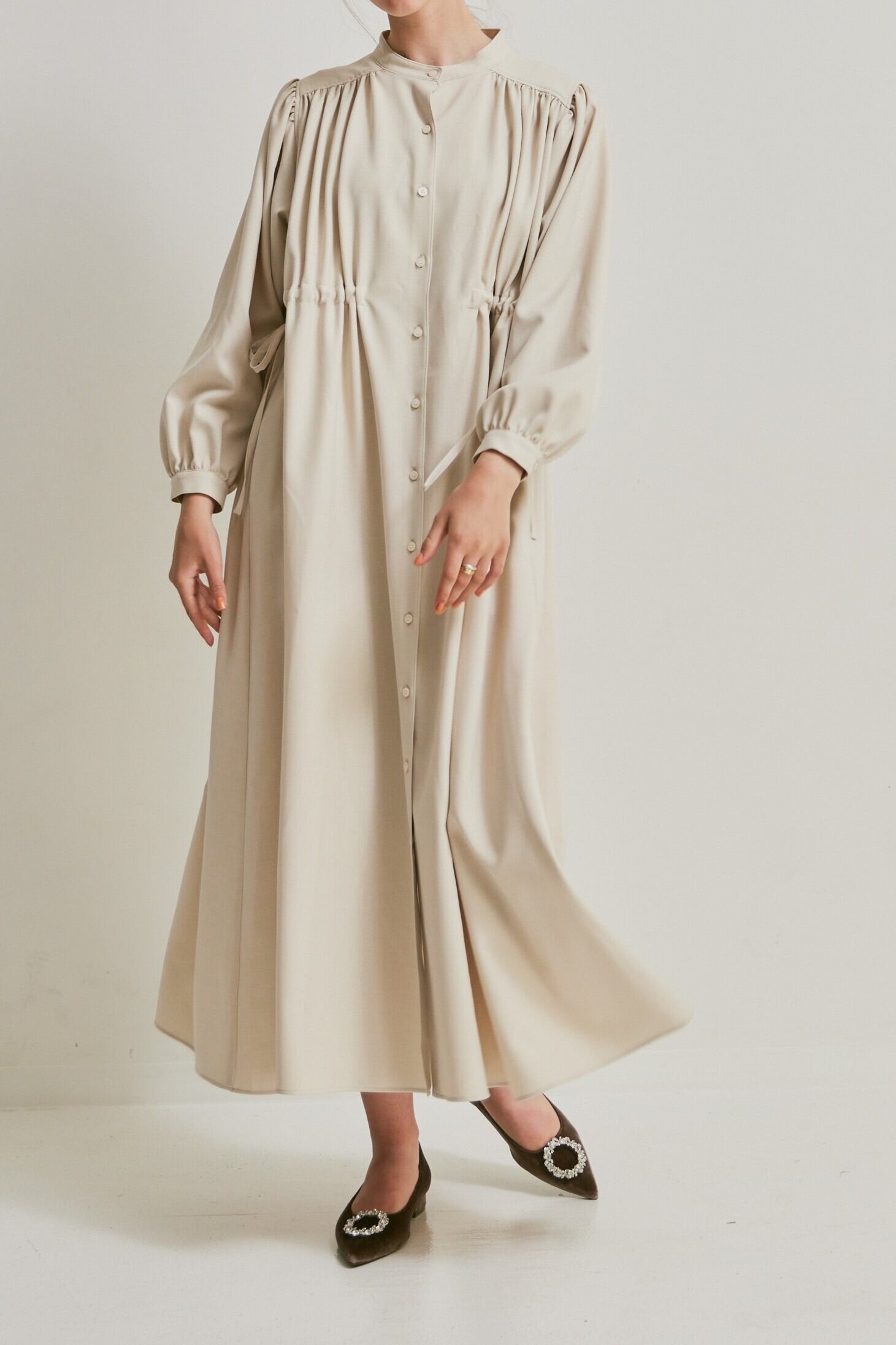 ウエストも紐で自由に結ぶことでシルエットを変化させたり、