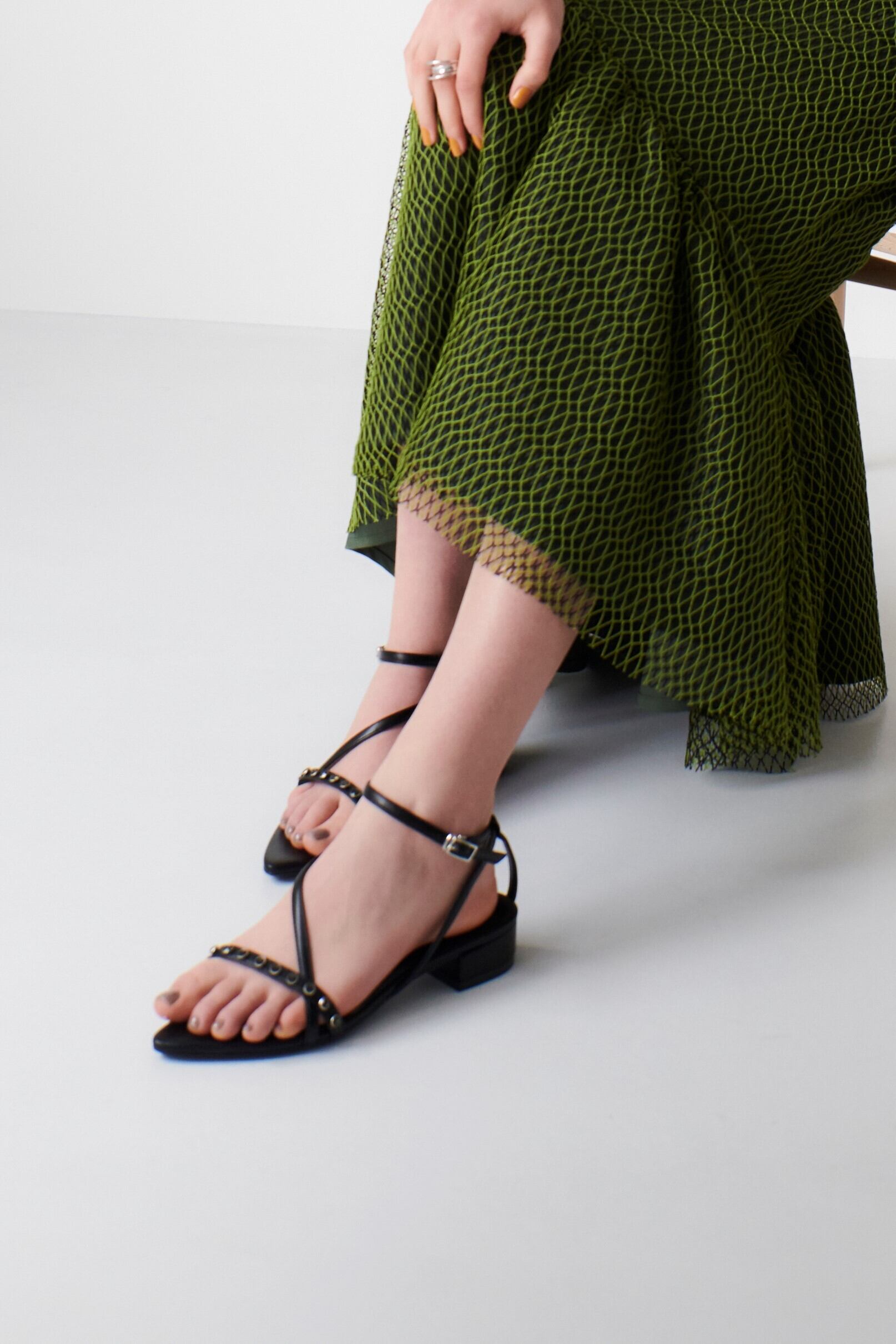 ポインテッドトゥのつま先と細めのストラップが斜めに入っているので、足を綺麗に見せてくれます。ポイントのビジューはトレンド感もあり、小粒のビジューですのでお洋服との相性も良く足元をさりげなく輝かせてくれます。カラーは【和】を連想させるような鮮やか過ぎない色でお作りしております。ワンピースやパンツスタイルによく合うと思います