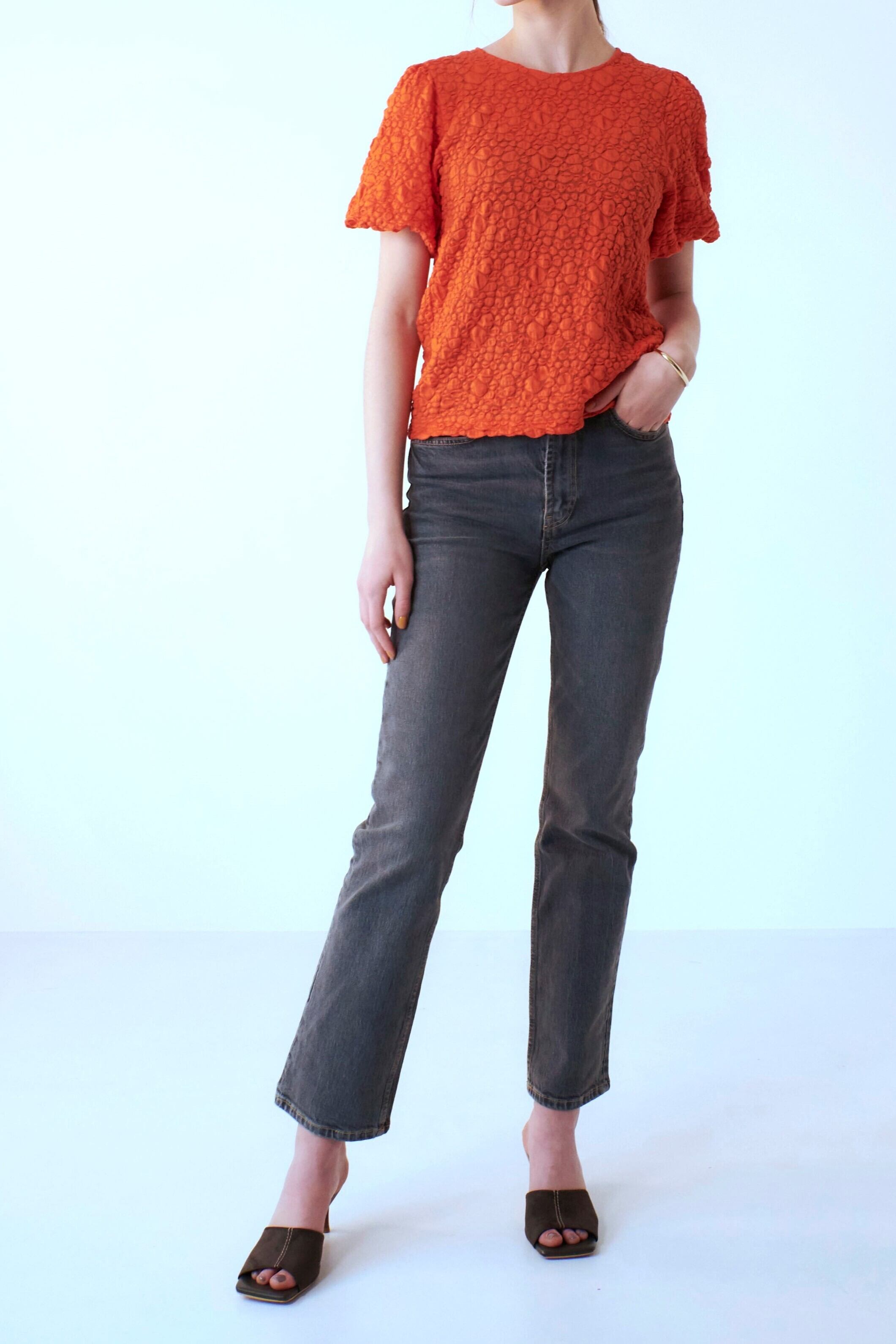 ポップコーンの様にポコポコ感のある、肌辺りの良いTOPSです。Tシャツの様にさらっと着れますが、きちんと感もある1枚です。ベーシック色加え、限定色のMINTとORANGEをお作りしております。